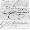 Jeanne avait une très belle signature, modifiée lors de chaque mariage : Du Rhône, veuve Pernon, veuve Fallofield.