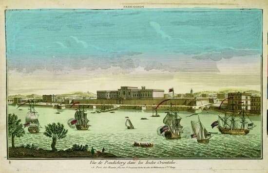 La ville de Pondichéry que les Français développent à partir des années 1720 a été construite par les Hollandais. C'est sous le gouverneur Dupleix, arrivé en 1742, qu'elle connait son apogée.